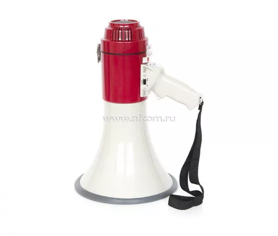 Электромегафон классического (ручного) исполнения. Оборудован встроенным микрофоном, поэтому для усиления голоса необходимо поднести ко рту оратора все устройство.