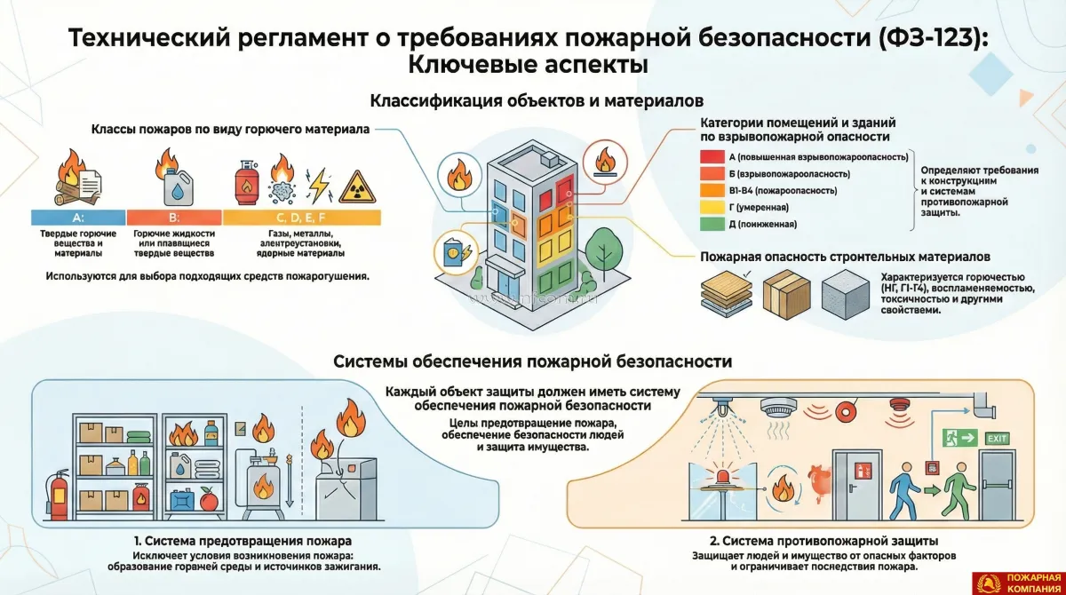 Федеральный закон от 22 июля 2008 года № 123-ФЗ «Технический регламент о требованиях пожарной безопасности» определяет основные положения технического регулирования в области пожарной безопасности и общие принципы обеспечения пожарной безопасности.