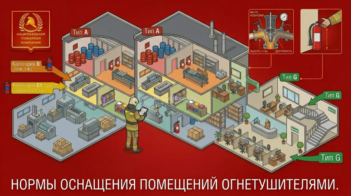 Правила расчета и размещения первичных средств пожаротушения