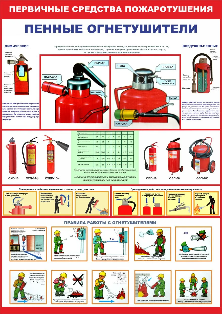 Для каких пожаров применяют воздушно-пенные огнетушители