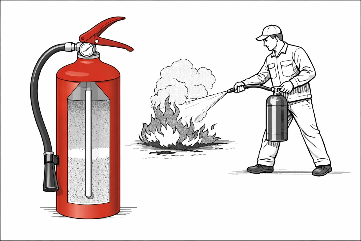 Знать устройство порошкового огнетушителя мало — скорость тушения зависит от правильных действий человека.