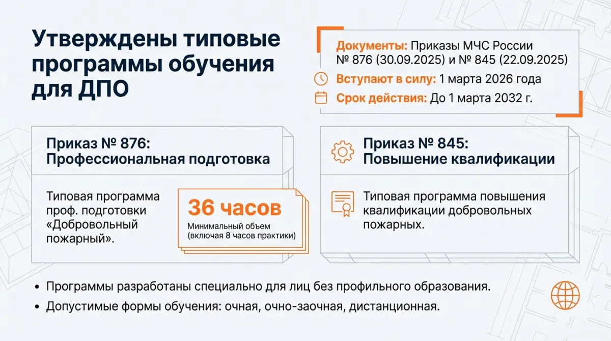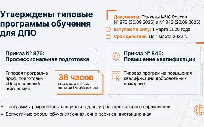 | № 876 (30.09.2025) | Типовая программа профессиональной подготовки «Добровольный пожарный» | 1 марта 2026 г. |