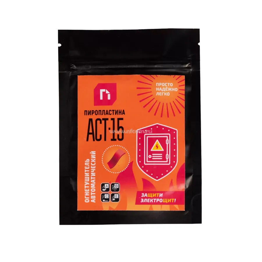 ПироПластина ACT-15 работает как интеллектуальная автономная система пожаротушения. Воздействие температуры на ее активные компоненты вызывает выделение огнетушащего вещества, вплоть до полного погашения очага пожара.