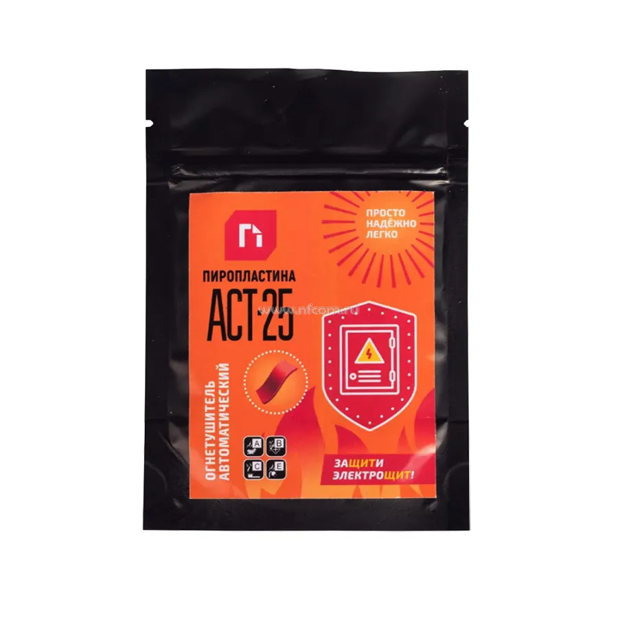 ПироПластина АСТ-25 работает как интеллектуальная автономная система пожаротушения. Воздействие температуры на ее активные компоненты вызывает выделение огнетушащего вещества, вплоть до полного погашения очага пожара.