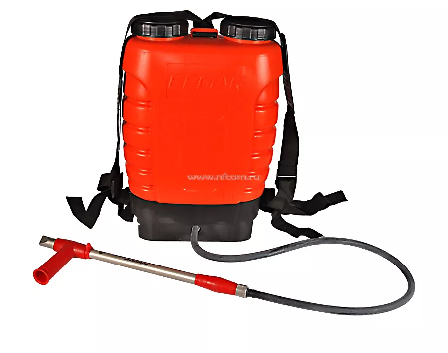 «РП-15 Ермак» ранцевый лесной огнетушитель (ранец противопожарный) - ручное средство для тушения низовых пожаров водными растворами не агрессивных химикатов. Выпускается в виде бачка прямоугольной формы по типу заплечного рюкзака. Материал емкости – ударостойкая пластмасса ярко-оранжевого цвета, устойчивая к воздействию агрессивных сред. Со стороны спины бачок оборудован прокладкой с теплоизолирующими свойствами.