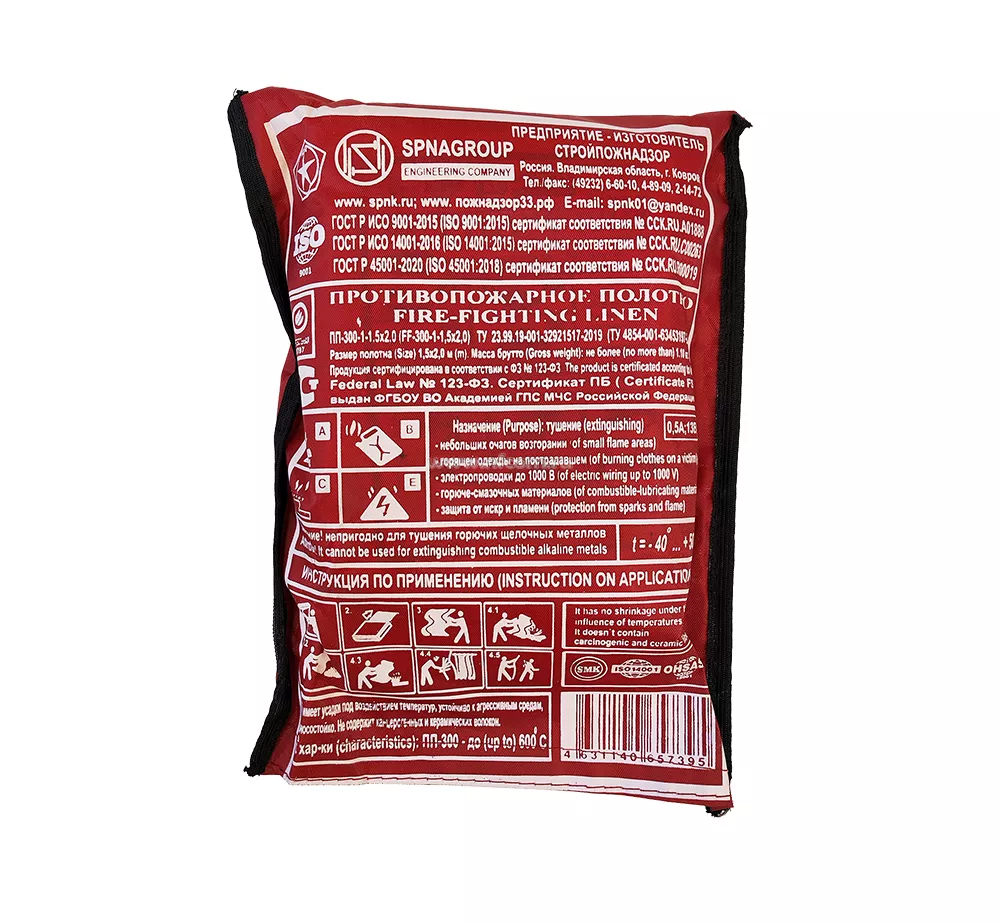Кошма противопожарная ПП-300 – применяется при тушении локальных очагов возгораний на начальной стадии. Расчетная температура горения не более 300°C. Полотно используется при тушении горящей одежды на пострадавшем, защиты оборудования и горючих конструкций, при проведении сварочных и огневых работ.