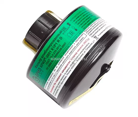 Фильтр комбинированный серии «Бриз-3001» K2P3 R D применяется для очистки вдыхаемого загрязненного воздуха от: