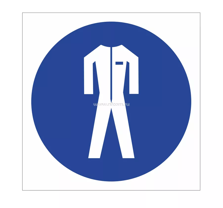 Знак М-07 (Работать в защитной одежде) размещается на рабочих местах и участках, где необходимо применять средства индивидуальной защиты.